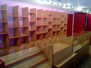 Три витрины дсп+стекло одна витрна дсп под кассу